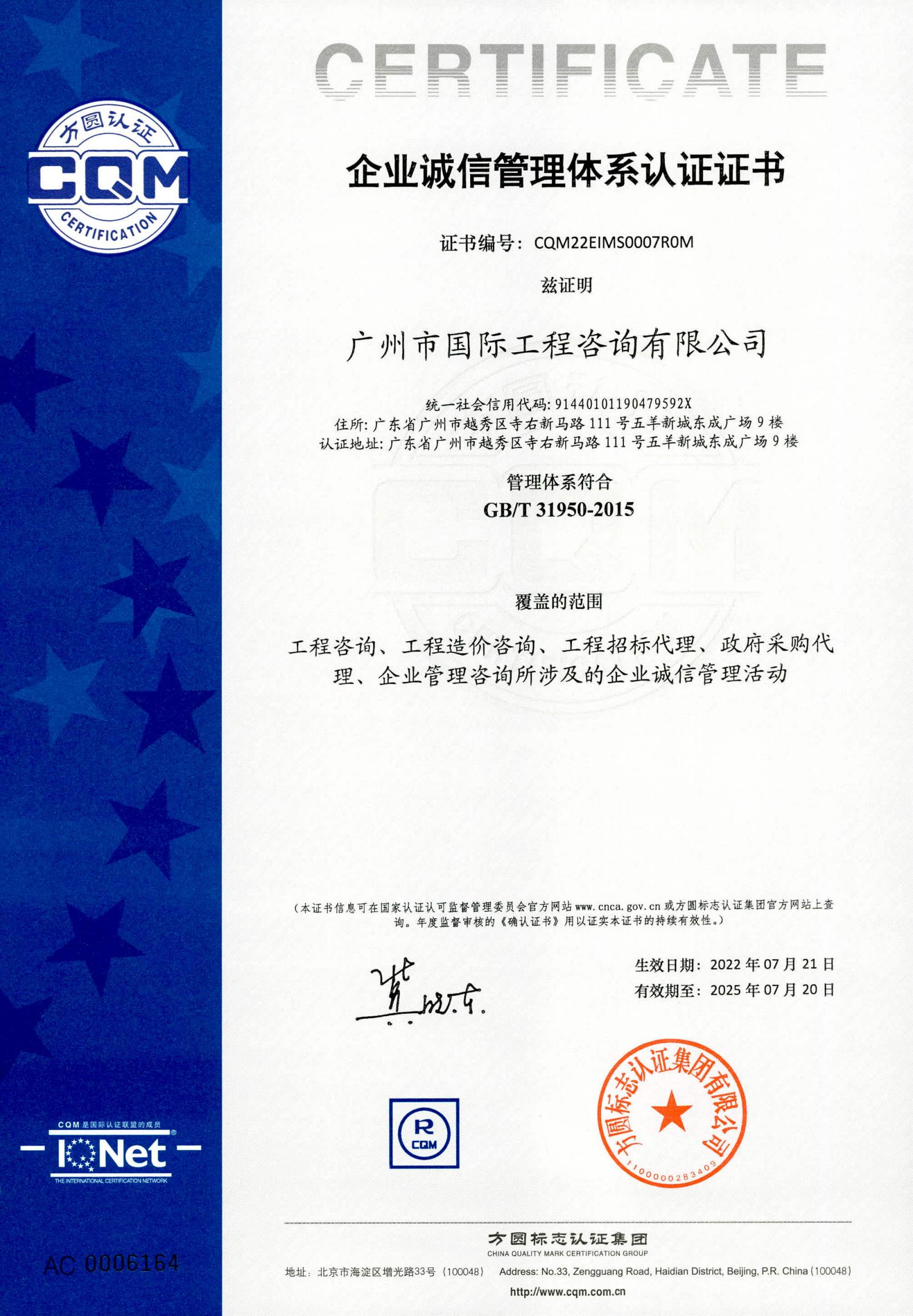 企業(yè)誠(chéng)信管理體系認(rèn)證證書(shū)