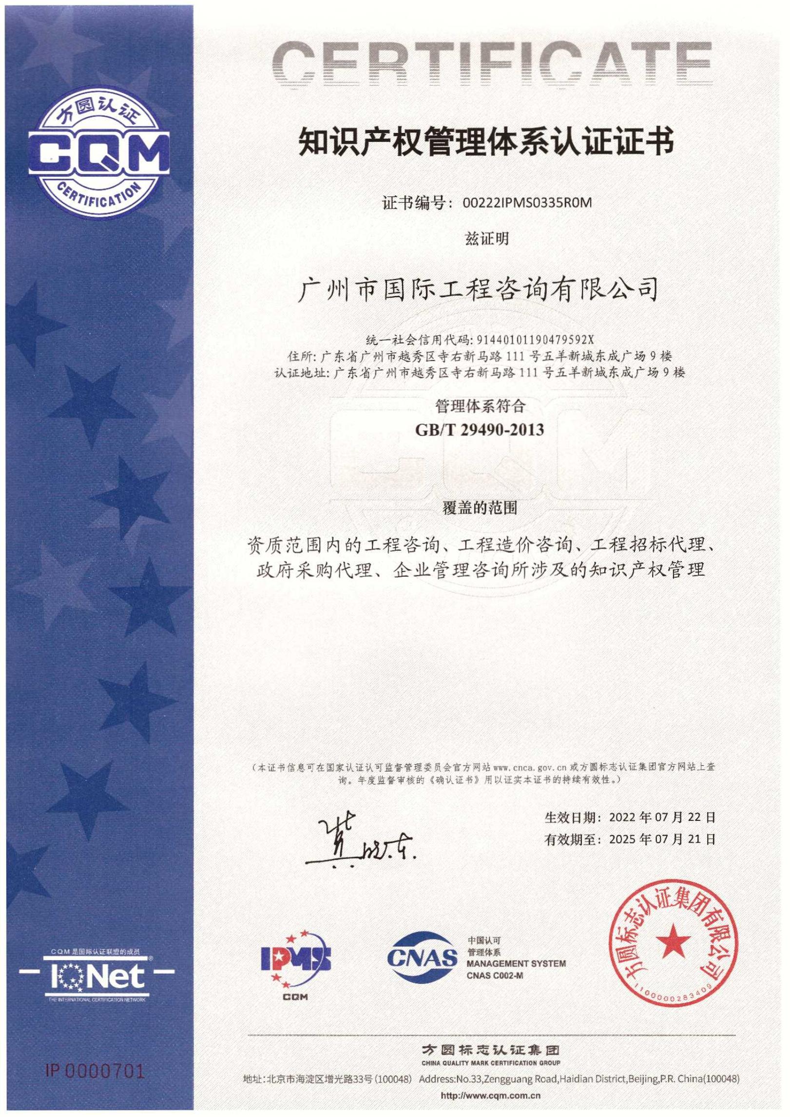 知識(shí)產(chǎn)權(quán)管理體系認(rèn)證證書(shū)