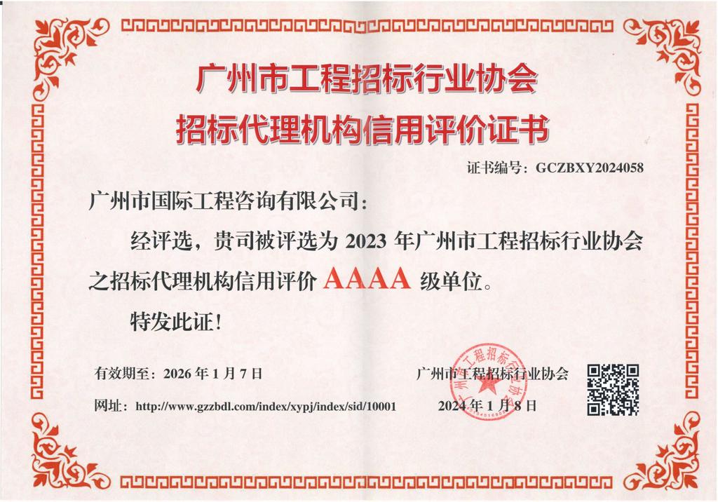 廣東省工程建設(shè)招標(biāo)代理行業(yè)資信評價(jià)AAA等級...