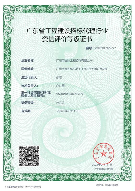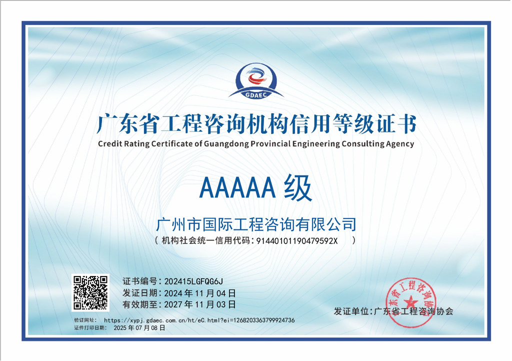 廣東省工程咨詢機(jī)構(gòu)信用等級AAAAA級