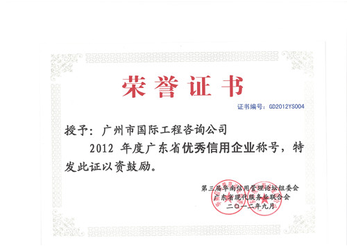 2012年度廣東省優(yōu)秀信用企業(yè)