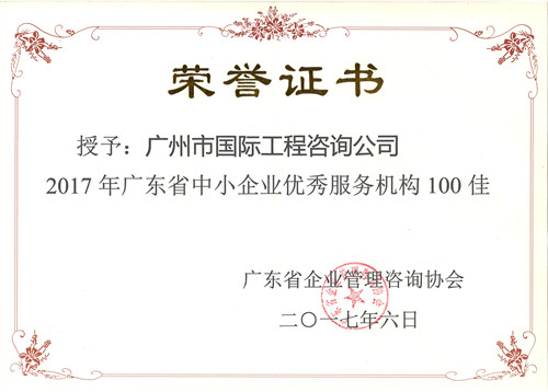 2017年廣東省中小企業(yè)優(yōu)秀服務(wù)機構(gòu)100佳
