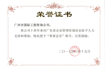 廣東省企業(yè)管理咨詢協(xié)會榮譽會員