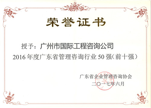 2016年度廣東省管理咨詢行業(yè)50強(qiáng)(前十強(qiáng))