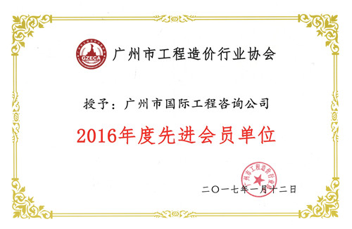 2016年度廣州市造價(jià)行業(yè)協(xié)會先進(jìn)會員單位