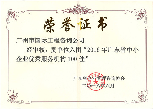 2016年廣東省中小企業(yè)優(yōu)秀服務(wù)機(jī)構(gòu)100佳