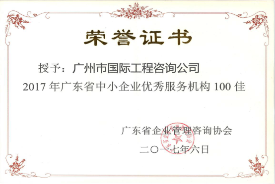 我司榮獲“2016年度廣東省管理咨詢(xún)行業(yè)50強(qiáng)(前十強(qiáng))”和“2017廣東省中小企業(yè)優(yōu)秀服務(wù)機(jī)構(gòu)100佳”稱(chēng)號(hào)