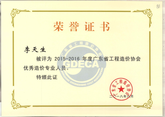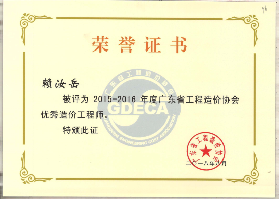 圖5:廣東省優(yōu)秀造價(jià)工程師——賴汝岳